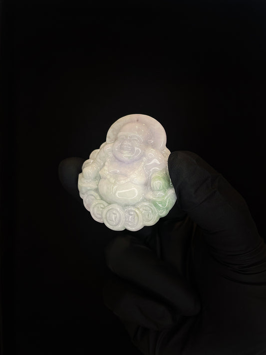 Lavender Green Laughing Buddha Money Coins Jade Pendant