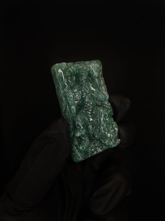 Deep Green God of War Guan Yu Jade Pendant